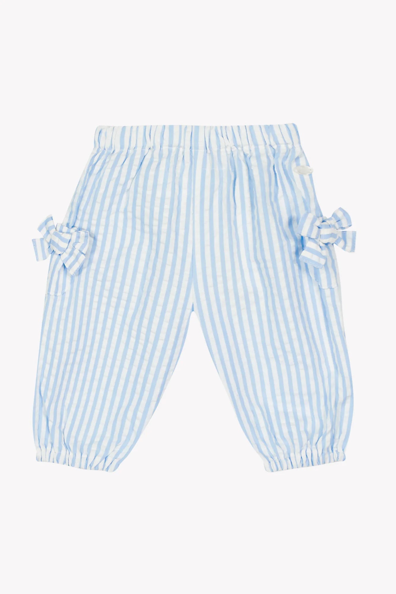 Deze gestreepte broek is een zomerse favoriet voor kleine ontdekkers. Met elastische taille en charmante strikdetails combineert ze comfort met een speelse, verfijnde look.