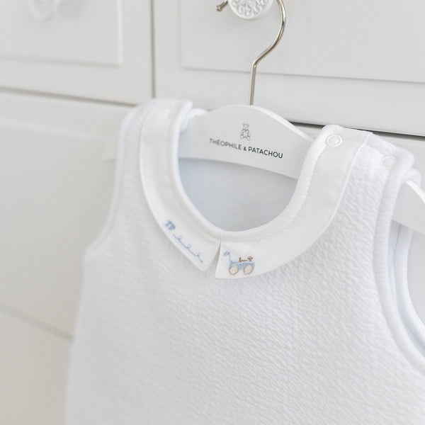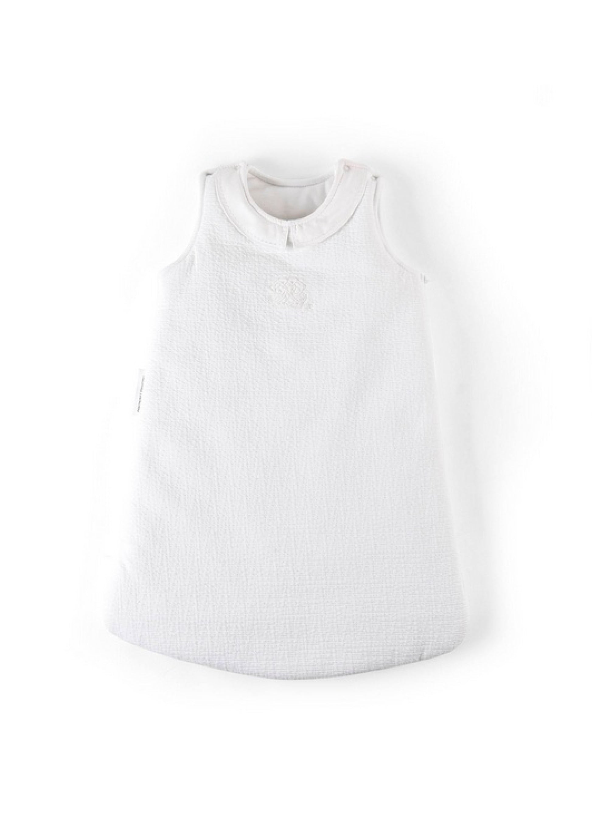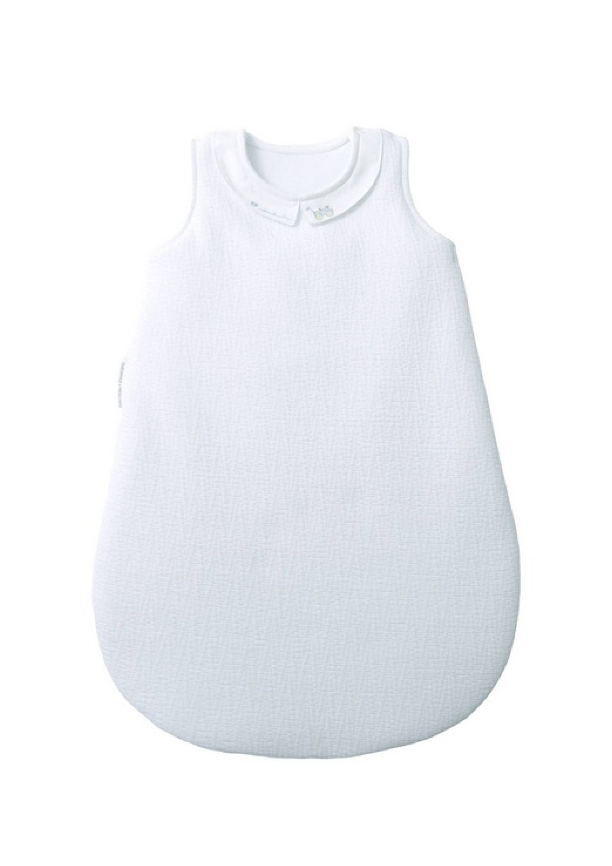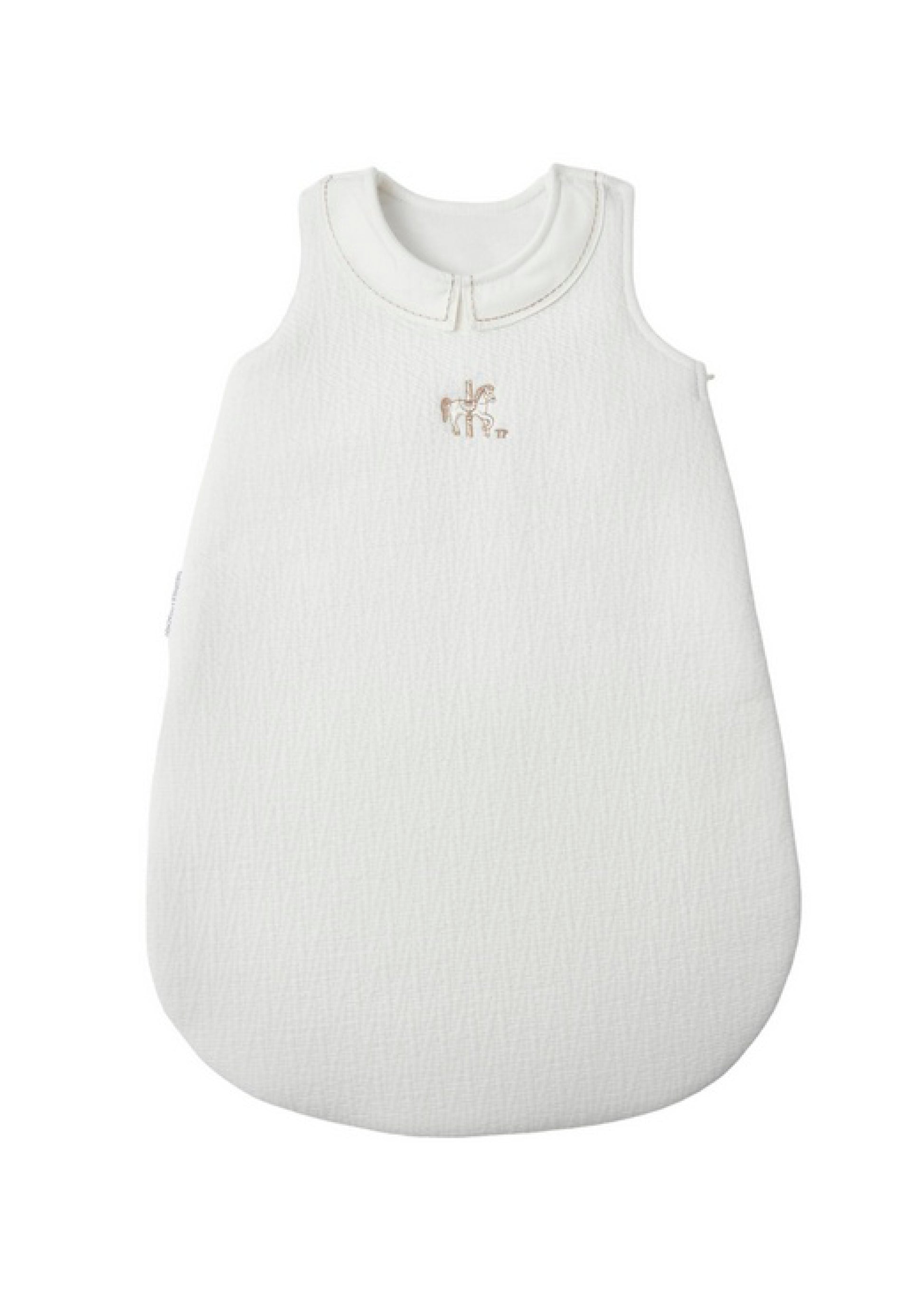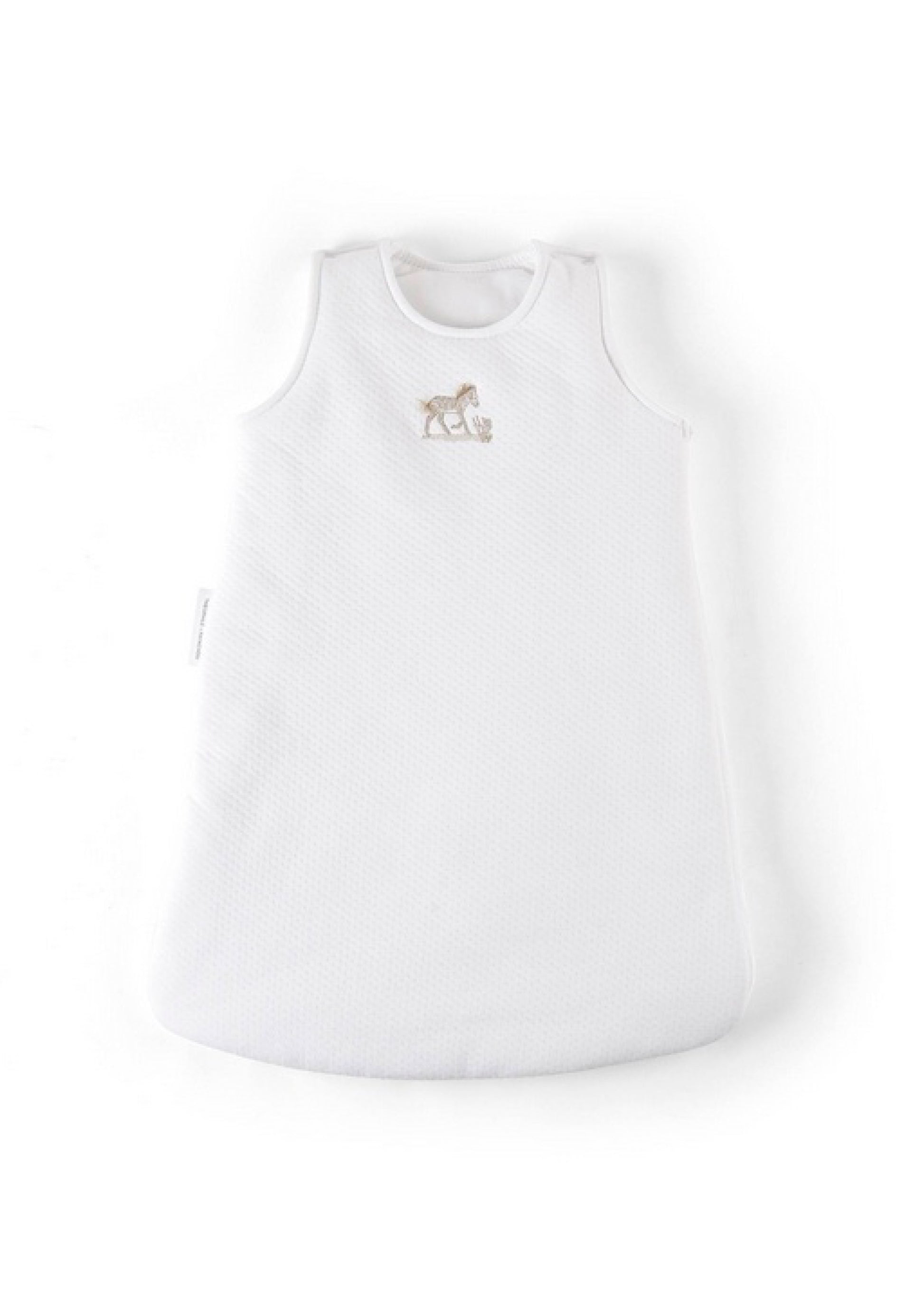 Zachte katoenen slaapzak met ritssluiting rondom en drukknopen op de schouders. Biedt comfort en gemak voor de allereerste slaapjes van je baby.