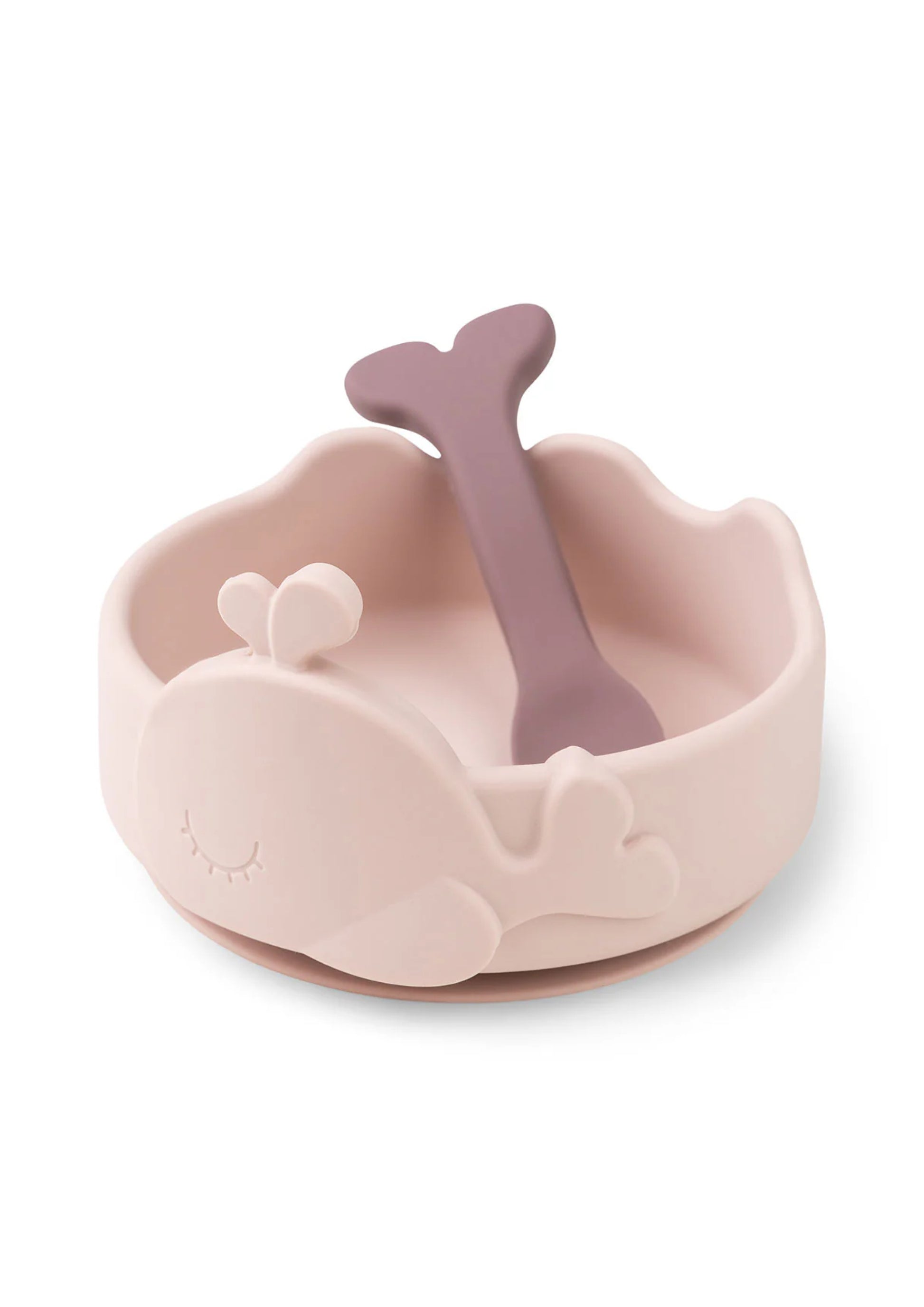 Siliconen kom met zuignap en bijpassende babylepel in schattig Wally-design. Ideaal voor de eerste hapjes en zelfstandig leren eten.