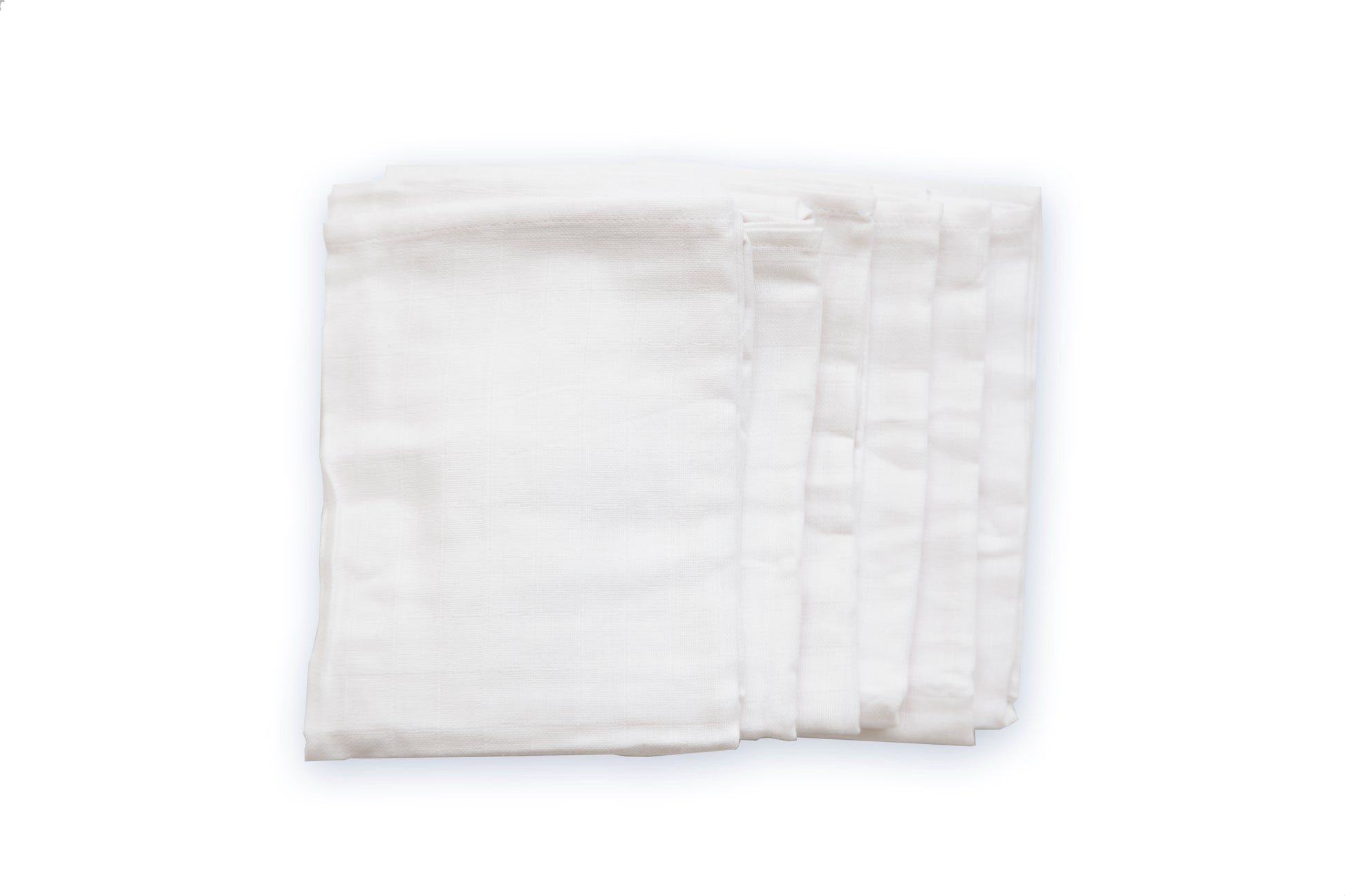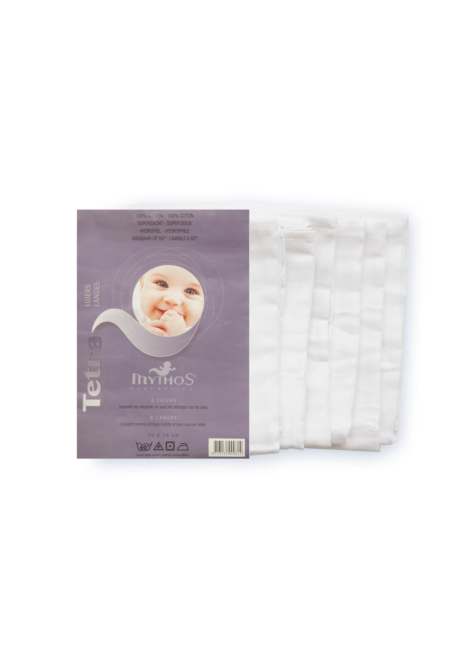 Set van 6 zachte, ademende tetradoeken van 100% hydrofiel katoen. Onmisbaar voor de verzorging van je baby.