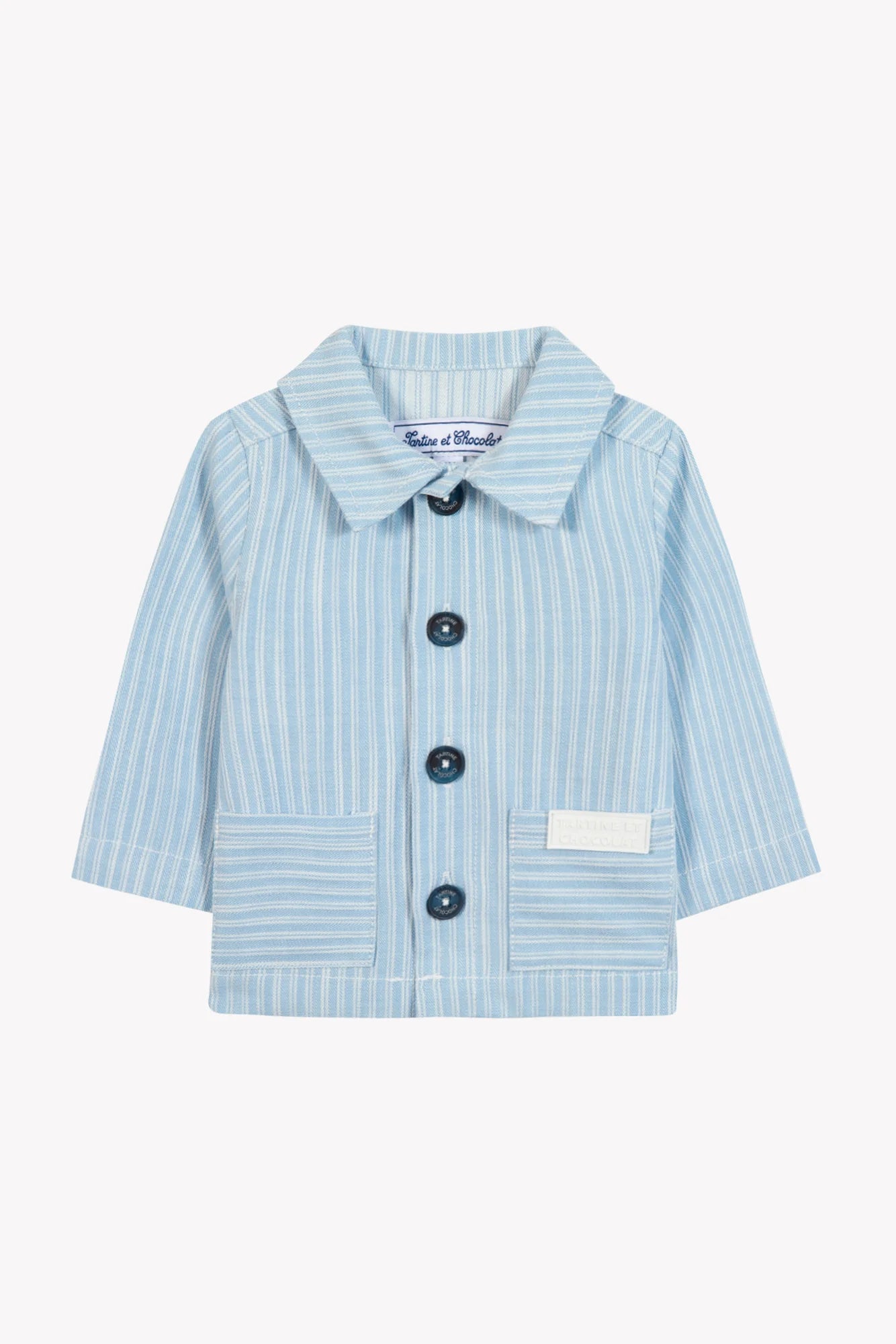 Deze katoenen babyjas voor jongens straalt een frisse, maritieme stijl uit. De fijne witte strepen, puntkraag en knopen zorgen voor een verfijnde look, ideaal voor zachte uitstappen.